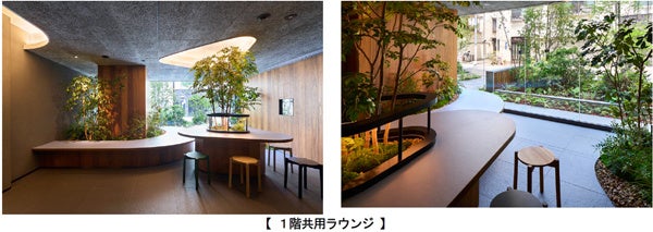 中低層建物が密集する都心の街区に建つため、開口部や色彩の調整により、バルコニーが持つ生活感を和らげ、周辺環境のスケールと穏やかに調和する外観を形成しました。都市生活者が求める、他者の存在を感じながら緩やかな関係性を育む共用ラウンジは、入居者が自由に利用できる空間として設けられています。また、周辺住民にとっても憩いの場となる前面の緑化空間は、都市に共生の風景をもたらしています。