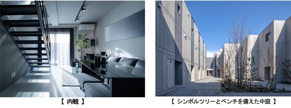 室内においては、ストリップ階段(※2)によって立体的な広がりを演出し、戸建住宅のような生活動線を実現する豊富な間取りを提案しています。また、上下階がすべて自分の住戸であるため、生活音が気になりにくく、プライバシー性にも優れた構造となっています。一方で、住棟の中央に中庭を設け、シンボルツリーやベンチを設置することで、入居者同士のコミュニティの場を提供し、共助の意識付けを図っています。