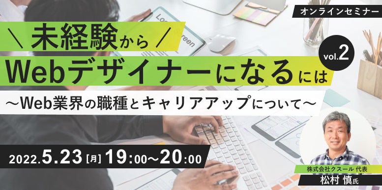 「未経験からWebデザイナーになるには」シリーズ第2回 5/23(月)セミナー参加で“Web業界のいろは”を知ろう!