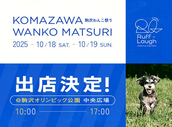 当社が展開する、愛犬と小学校に泊まれるグランピング施設『ETOWA KISARAZU(エトワ木更津)』と共同で、駒沢わんこ祭り2025に出店します。駒沢わんこ祭りとは、「犬の聖地」とも呼ばれる駒沢オリンピック公園を会場とし、人と愛犬とのより良い共存生活推進を目的として開催されています。本イベントでは、さまざまなイベントや関連企業の出店を通じて、愛犬家のモラル向上のための情報発信を推進しています。当日は、『Ruff-Laugh Chiba』の無料宿泊券が当たる抽選などのイベント限定企画を実施します。