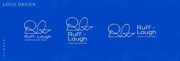 施設の名称は、英語でイヌの喜ぶ声のワンワンを表す“ruff-ruff”と、ヒトの笑い声を表した“Laugh”を組み合わせた”Ruff-Laugh(ラフラフ)“に決定しました。さらに、ヒトの顔とイヌの顔を最小単位に表現した円と三角形を組み合わせたロゴも策定し、姿かたちの違いにかかわらず家族として対等な関係であり、重なり合えばそこに新しい笑顔が生まれることを示しています。イヌもヒトも同じ家族ではありながらも、それぞれの過ごし方を心から楽しめるからこそ、鳴き声や笑い声が心地よく響きあう場所にしたい。そのような思いを込めた名称とロゴとともに、“Ruff-Laugh”はイヌとヒトが自由に過ごせる、理想のライフスタイルを提案していきます。