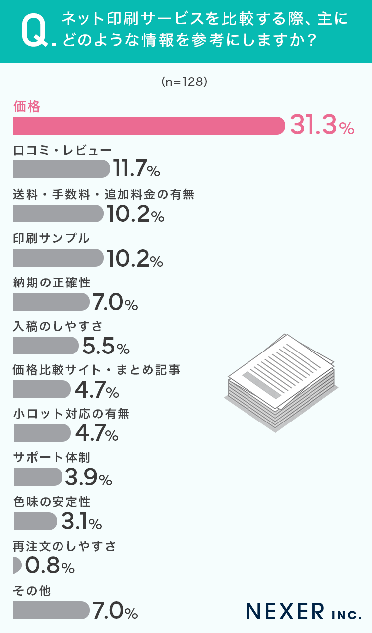 ■31.3%が、ネット印刷サービスを比較する際に参考にする情報は「価格」と回答