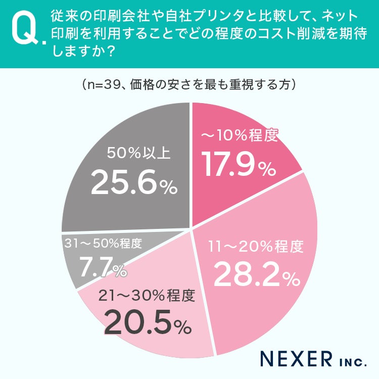 質問3:従来の印刷会社や自社プリンタと比較して、ネット印刷を利用することでどの程度のコスト削減を期待しますか?(質問1で「価格の安さ」と回答した方)