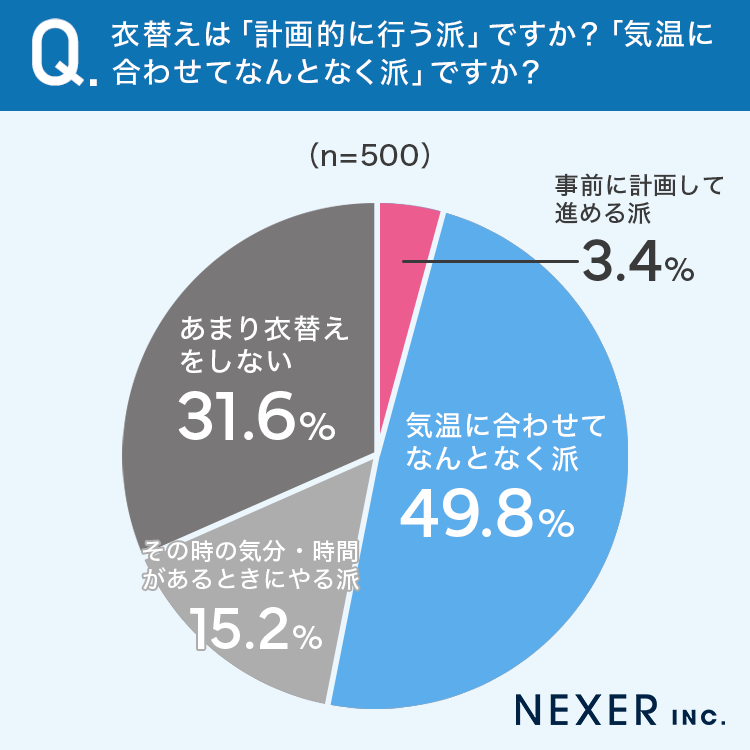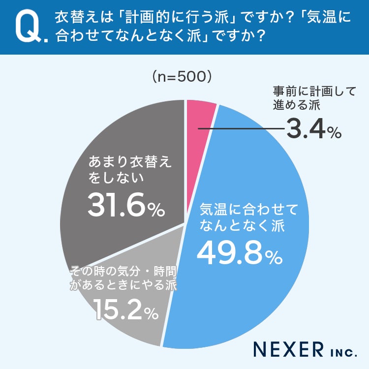 計画的に衣替えを進める人は非常に少なく、多くの人がその日の気温や気分に応じて対応していることがわかります。
