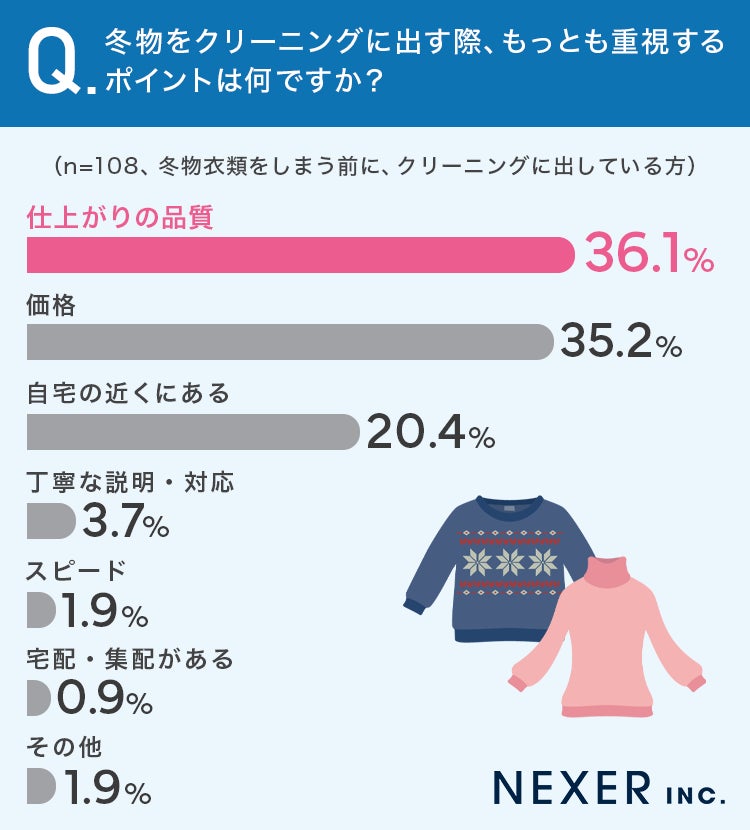 最後に、冬物をクリーニングに出していると回答した方に、クリーニング店選びでもっとも重視するポイントを聞いてみました。