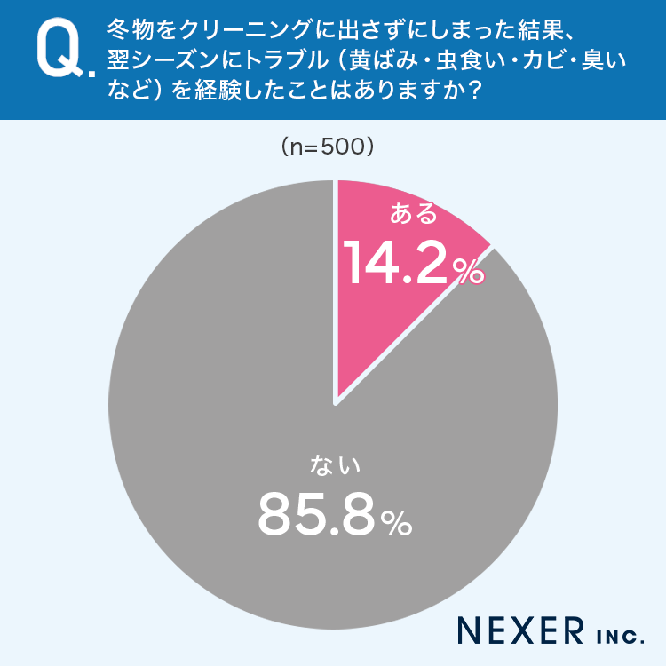 ■14.2%が、冬物をしまった翌シーズンにトラブルを「経験したことがある」と回答