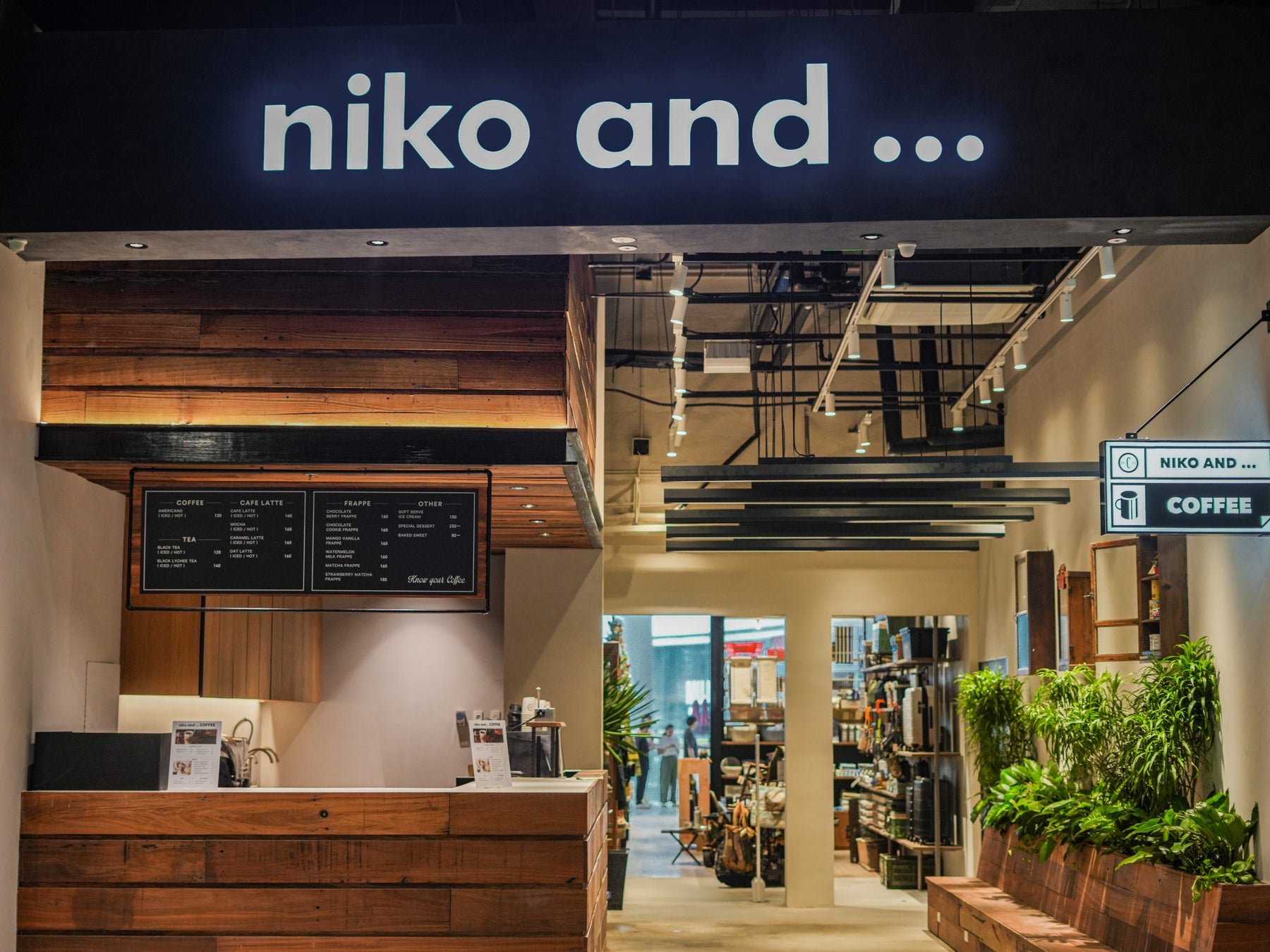 カフェスペース「niko and ... COFFEE」を併設、店舗限定メニューを展開。