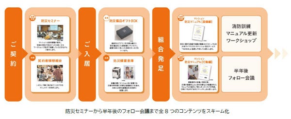 さらに自助・共助の観点から入居前の防災セミナーをはじめ、組合発足後のフォロー会議まで、全8つのコンテンツをスキーム化し、2020年11月から現在まで16物件で導入しました。今後も新規販売物件でも継続的に取り組む予定です。「煩わしさを心地よさに変えた距離感」で日常的なつながりを築き、有事には誰も取り残さない自走型防災コミュニティを実現します。