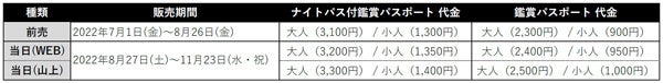 [前売ナイトパス付鑑賞パスポート]大人(中学生以上)3,100円、小児(4歳~小学生)1,300円