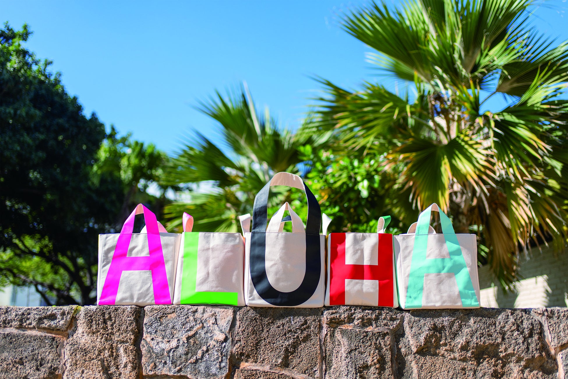ローカルのPOP-UPなどで活動するブランドが、日本初登場!4面にA・L・O・H・Aがデザインされ、一周するとALOHAになるアイコニックなバッグやポーチが登場します。