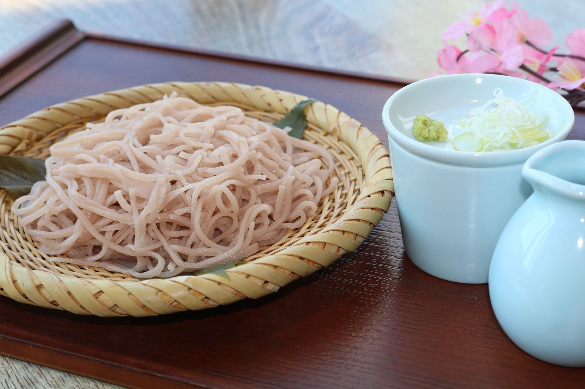 毎朝丁寧に挽いた香り高い蕎麦に桜の葉を練り込み、風味豊かに仕上げた季節限定の変わり手打ち蕎麦をご用意いたしました。