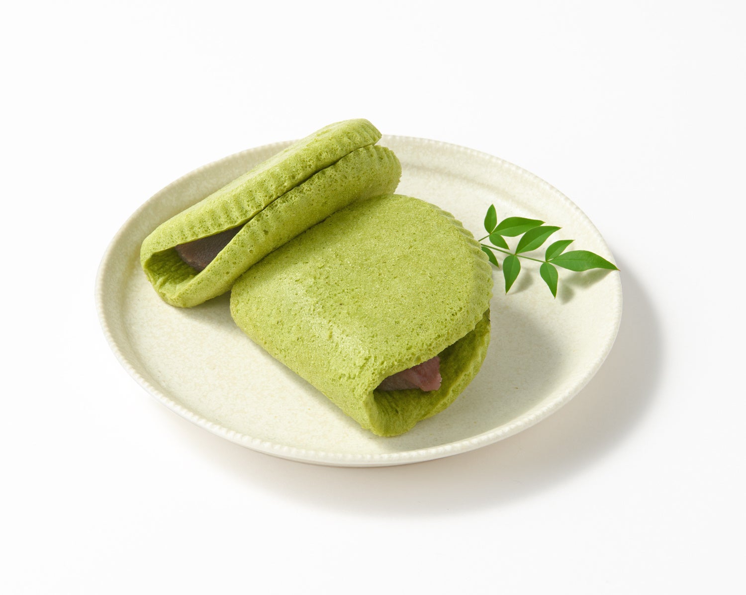 抹茶香るモチモチの蒸しカステラ生地でこし餡をサンド。