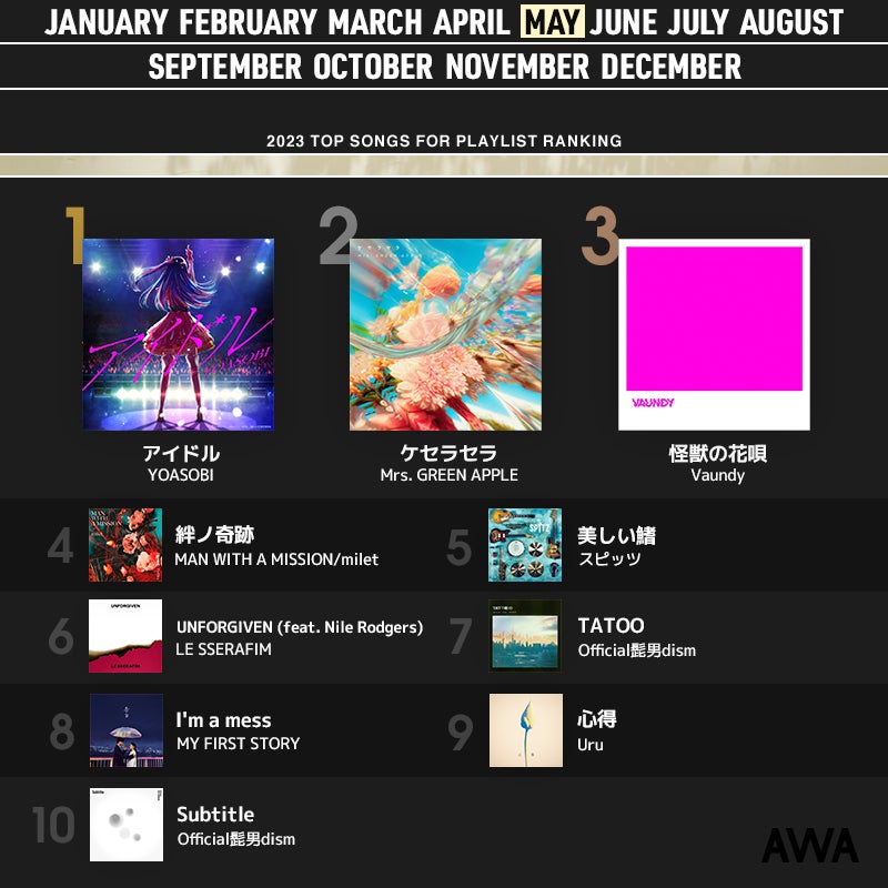〜2023年5月度のAWAプレイリスト採用楽曲ランキングを発表〜
