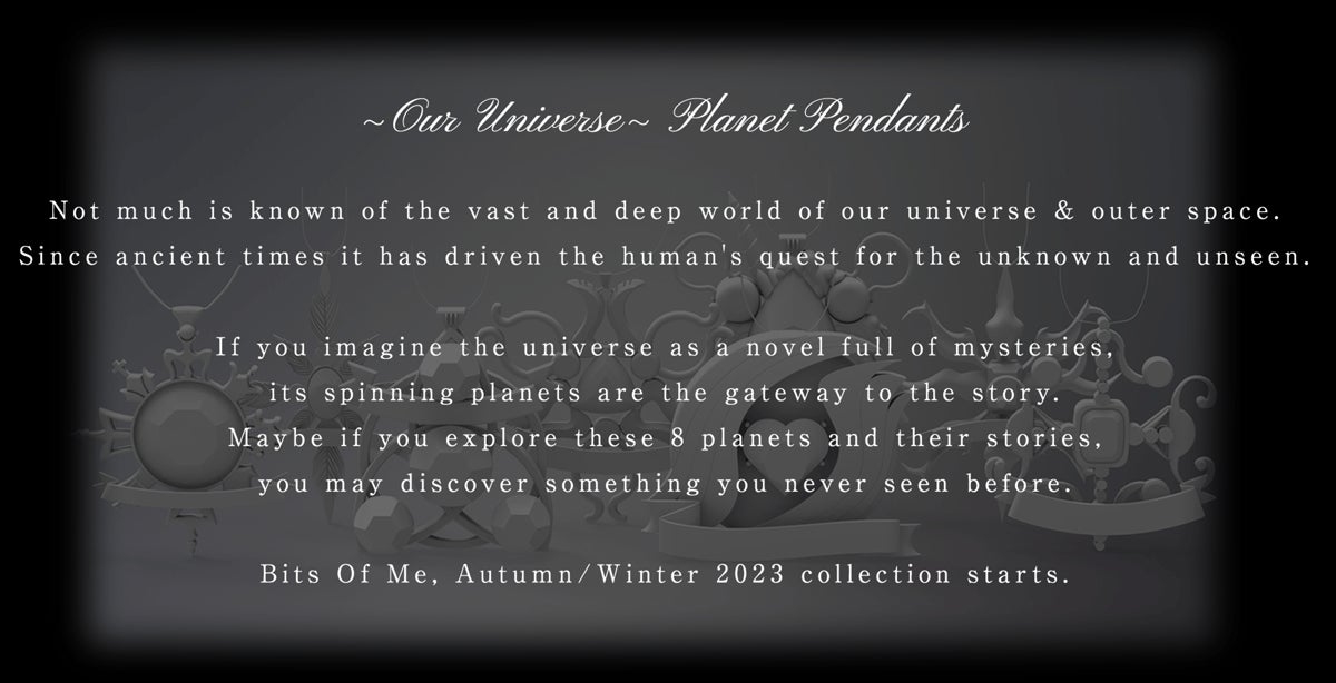 「2023 オータム/ウィンターコレクション」のテーマは「惑星」。様々なバリエーションを持つ8種類のデジタルペンダントを各種2バリエーション、合計16点展開します。