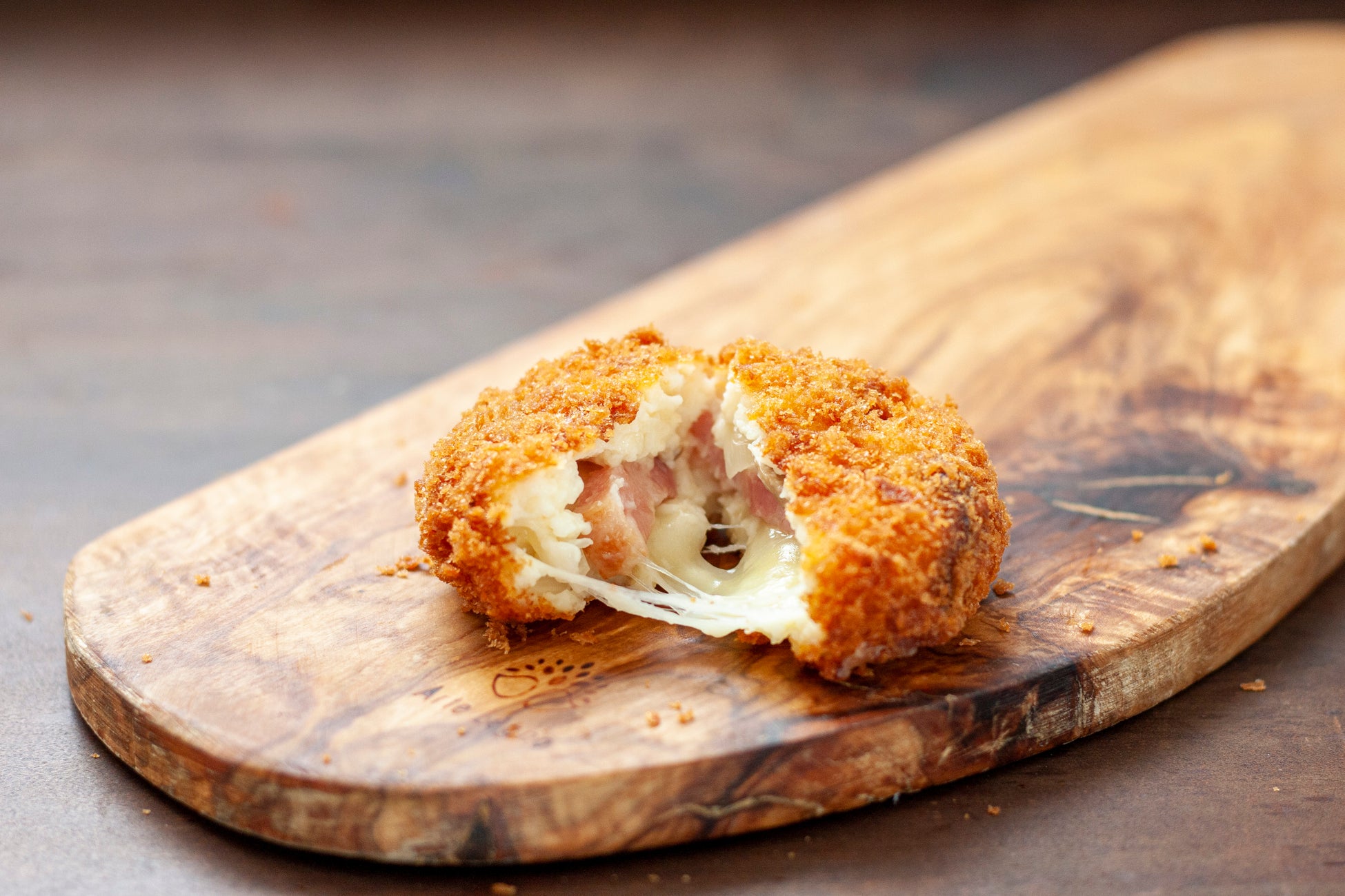 北海道物産展でも人気の<じゃがいもHOUSE>から、北海道産の牛乳をたっぷり使用した濃厚なベシャメルソースに北海道産のとろけるチーズ、沖縄のブランド豚「あぐー豚」のもも肉を使用したベーコンをたっぷりと閉じ込めたコラボレーションアイテムが登場。店内厨房で生パン粉を付けてから揚げる出来立てのクリームコロッケは、外はサクサク、中はとろーり、お肉の旨みとチーズのコクが相性抜群のどさんこしまんちゅフェア限定アイテムです。