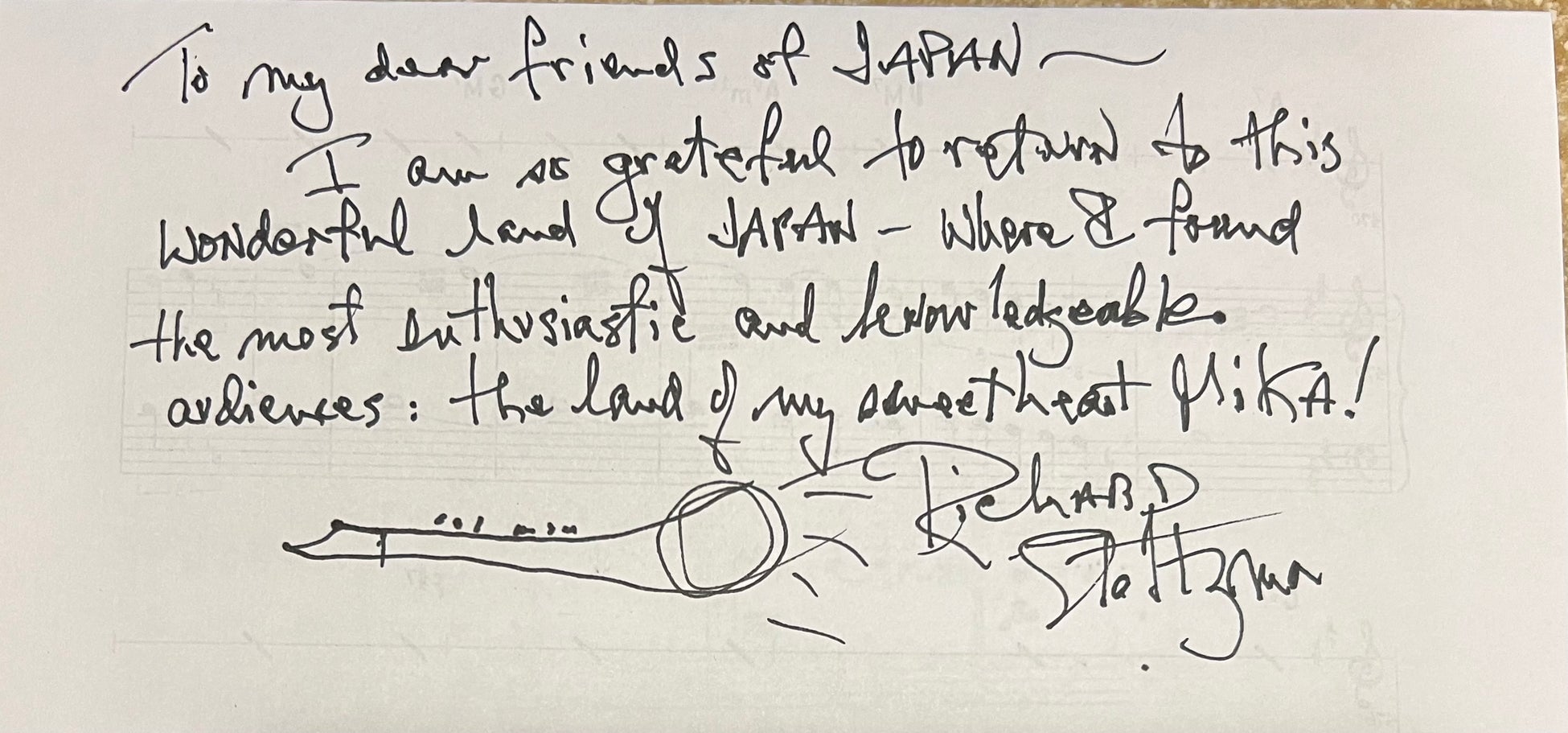 そこには、この上なく熱心で理解の深いお客さまがいますし、私の愛する妻の祖国でもあります!