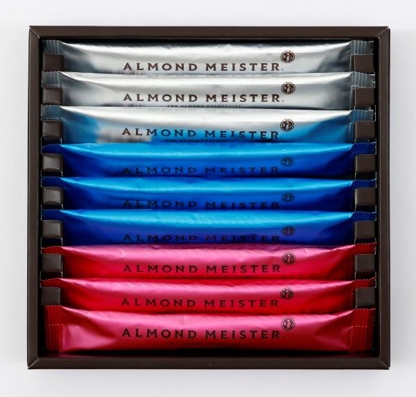 ↑●「アーモンドマイスター®9個入り(3種アソート)」税込1,620円(プレーン/ショコラ/クワトロベリー)