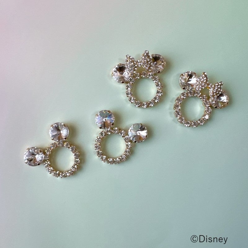 <taMa>左下:ミッキーマウス ピアス・イヤリング 各20,900円 ※別売りブローチ 15,400円、右上:ミニーマウス ピアス・イヤリング 各22,000円 ※別売りブローチ 16,500円(いずれもクリスタルガラス)