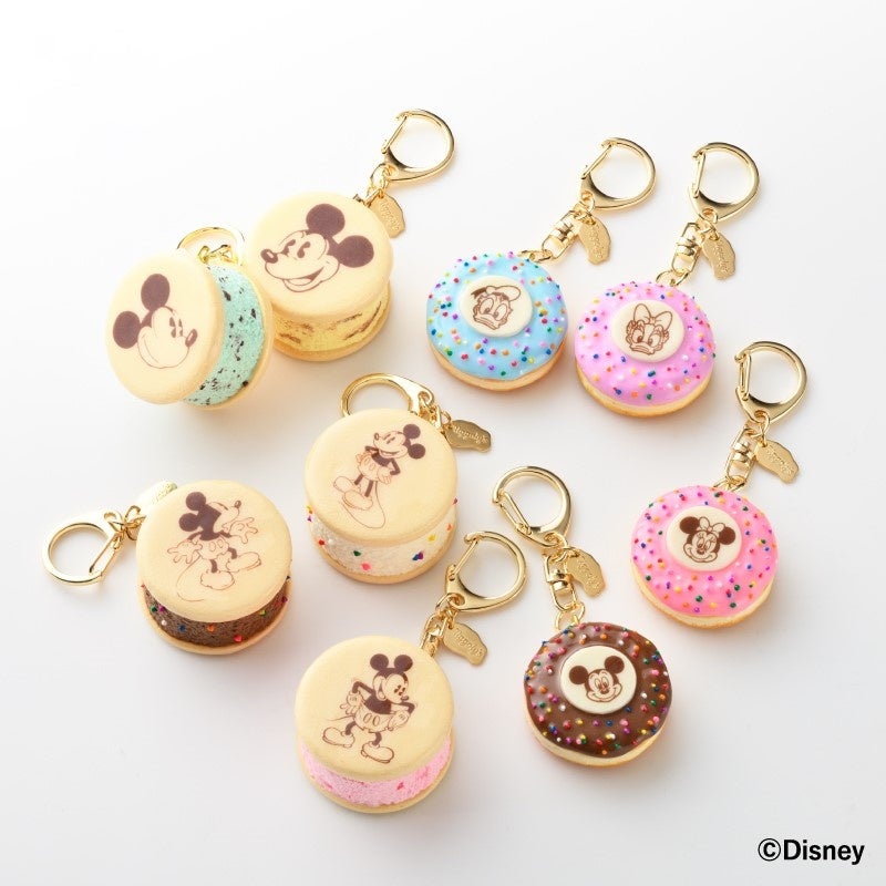 キャラクターがプリントされたホワイトチョコレートをトッピングしたドーナツ型と、ミッキーマウスのかわいいバタークッキーでサンドしたアイスクリームサンド型。カラフルでファニーなスイーツとキャラクターを組み合わせたコロンとした姿をお楽しみいただけます。