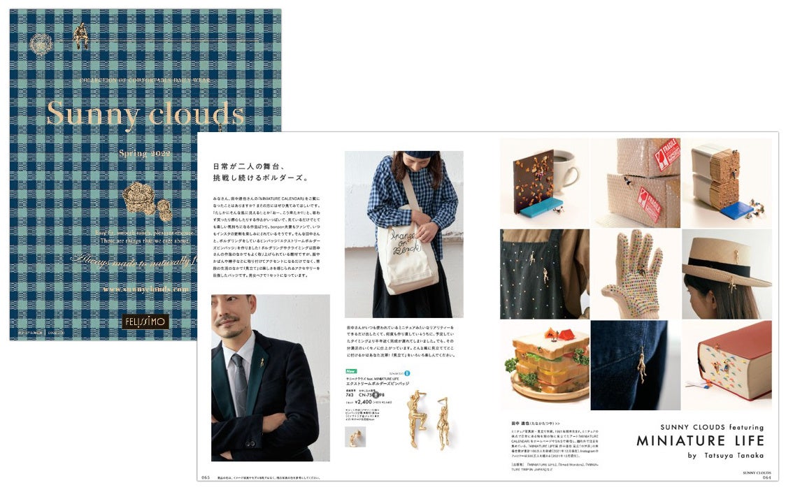 フェリシモから、ミニチュア写真家であり、見立て作家でもある田中達也さんとフェリシモ「サニークラウズ」とのコラボ「サニークラウズ feat. MINIATURE LIFE エクストリームボルダーズピンバッジ」が登場、2月14日より特集サイトを公開しています。普段の生活のなかで『見立て』の楽しさを感じられるアクセサリーを目指したバッジです。コラボアクセサリーの詳細は、田中達也さんのこれまでのコラボアイテムと併せて、公式サイトやデジタルカタログでチェックできます。