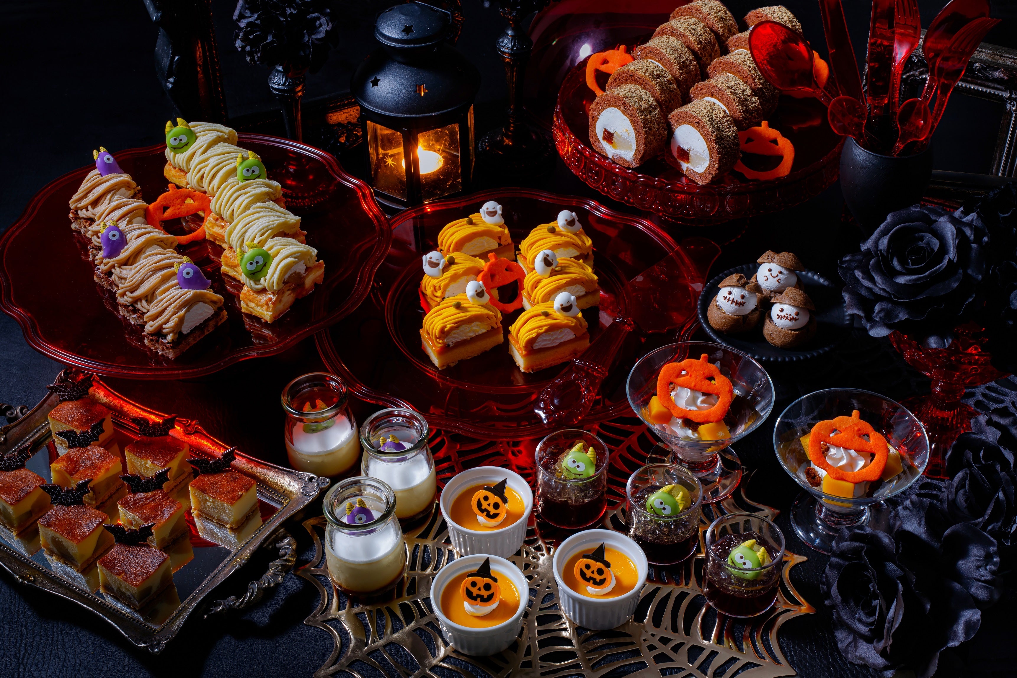 また、他にもサツマイモや栗、黒ゴマなどの秋の味覚をふんだんに使用したパティシエの遊び心溢れるスイーツがずらりと登場!“怖カワイイ”スイーツは写真映え間違いなし!