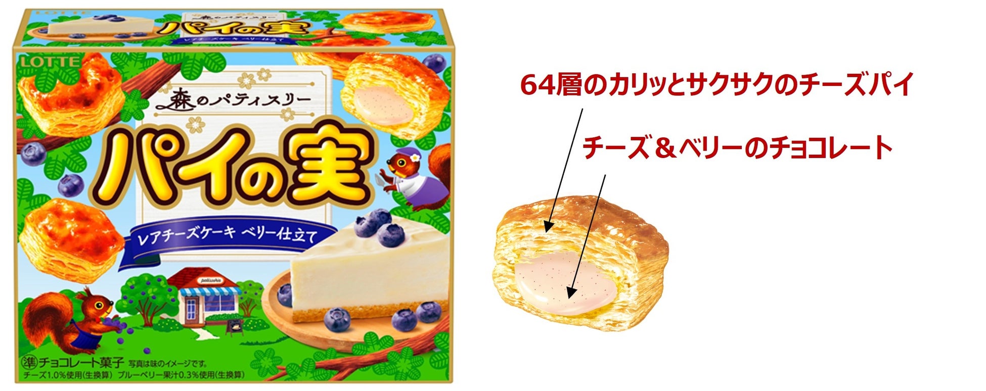 株式会社ロッテ(東京都新宿区、代表取締役社長執行役員:中島英樹)は5月27日(火)に、パイの実ブランドから「パイの実<レアチーズケーキ ベリー仕立て>」を全国発売します。本商品からはじまる新シリーズ「森のパティスリー」のパッケージ中面には、絵本仕立てのオリジナルストーリーが描かれており、食べながら絵本の世界に没入できる、“読むお菓子”という新しい体験が楽しめます。ふわっと芳ばしく香るサクサクのチーズのパイと、さわやかな酸味のあるチーズに甘酸っぱいベリーを組み合わせたチョコで、レアチーズケーキの味わいを表現した、ほっとひと息つきたいときにピッタリのパイの実です。