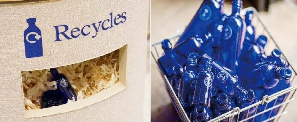 使用済みのブルーボトルを回収し、回収した容器は店頭でディスプレイに使われたり、砂状に加工し道路や埋め立て地などに再利用されているほか、アップサイクル製品として生まれ変わります。