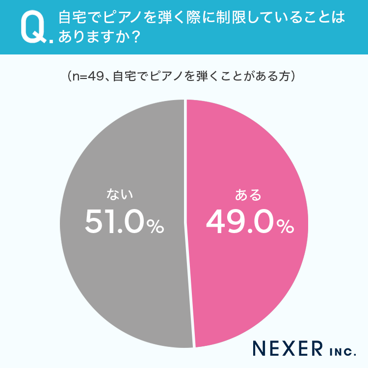 ■49.0%が「自宅でピアノを弾く際に制限していることがある」と回答