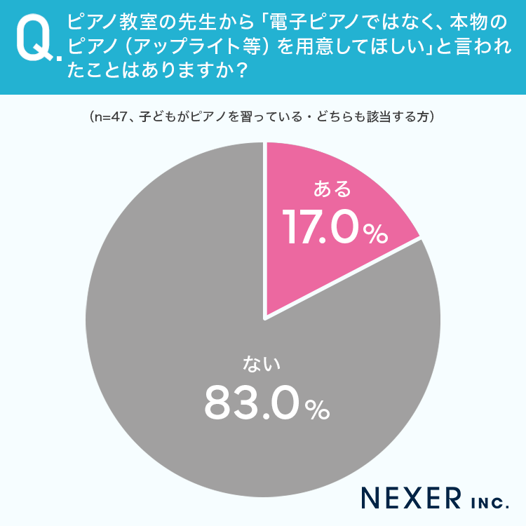 ■17.0%が、「本物のピアノを用意してほしい」とピアノ教室の先生から言われた経験がある