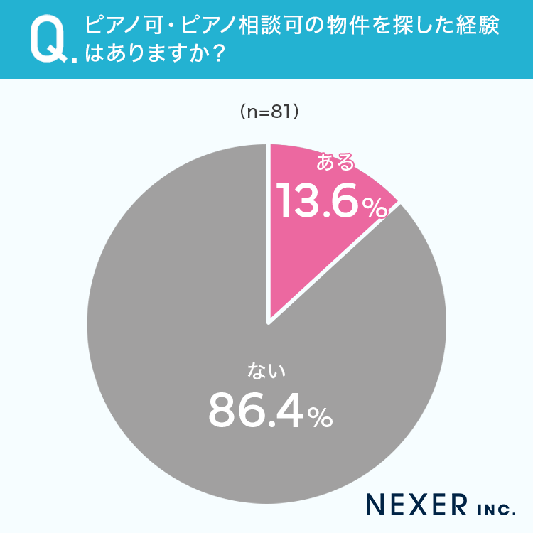 ■13.6%が「ピアノ可・ピアノ相談可の物件を探した経験がある」と回答