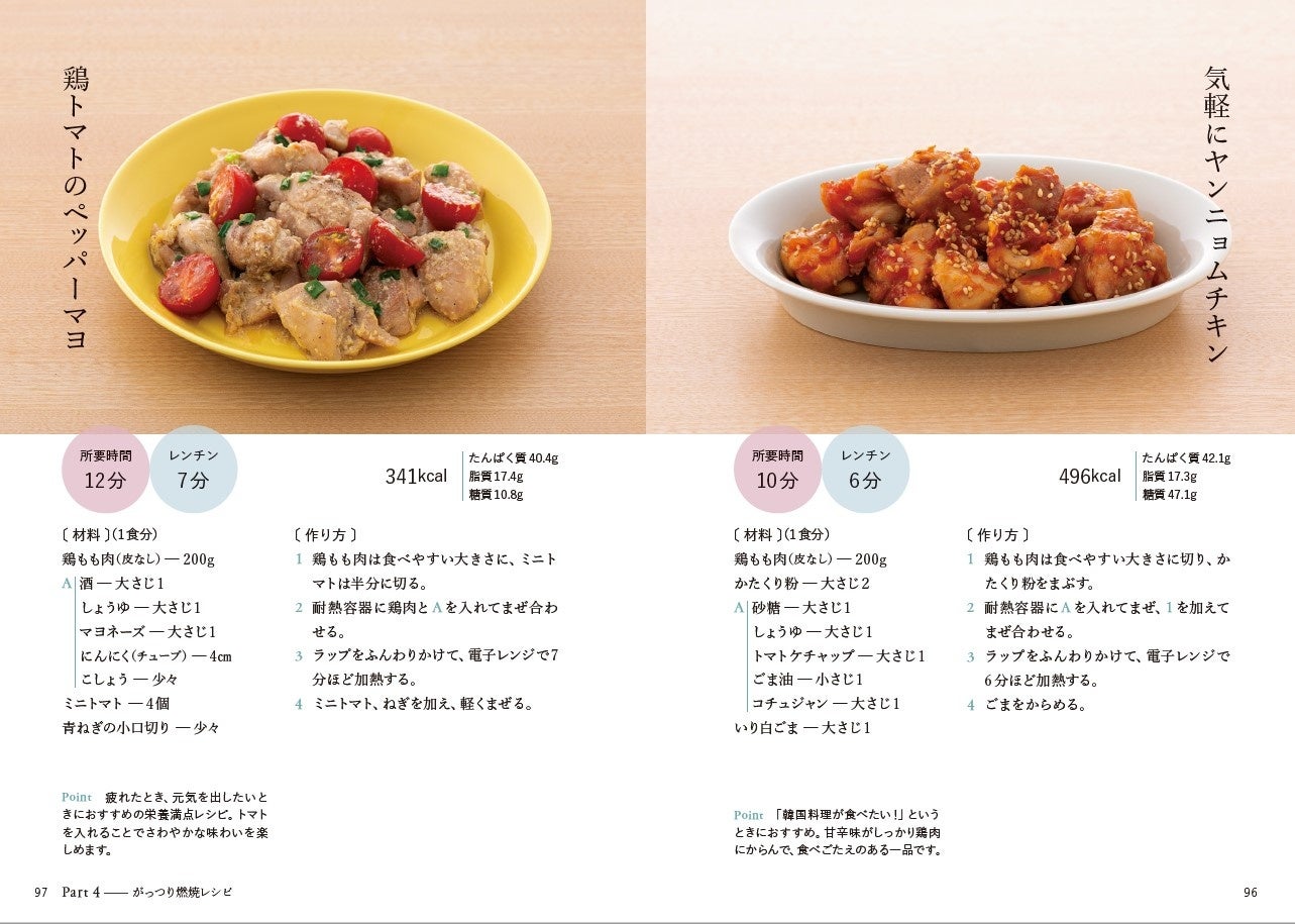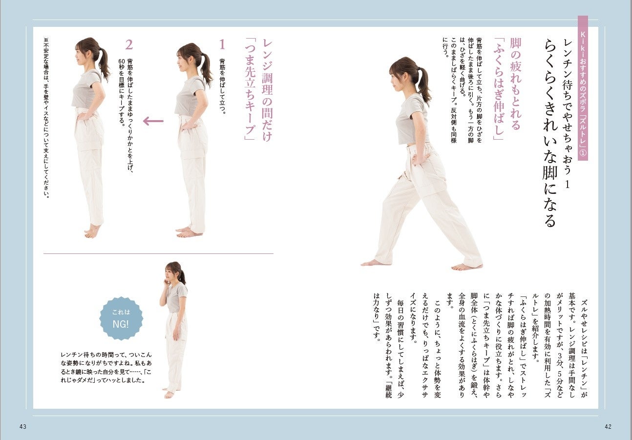 本書に、掲載しているのは主菜、副菜、スイーツ合わせ58品。さらに、「Kikiトレ」というYouTubeも発信しているKikiさんから、レンチン待ちのわずかな時間でできる「ズボらストレッチ」も紹介しています。
