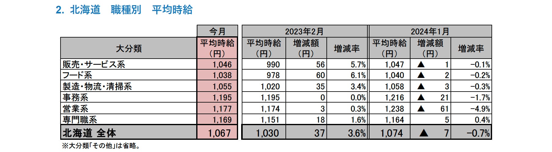 [北海道版]2024年2月度 アルバイト・パート募集時平均時給調査 北海道の2月度平均時給は前年同月より37円増加の1,067円