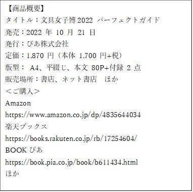 本日2022年10月21日、ぴあ株式会社より『文具女子博2022 パーフェクトガイド』が発売になりました。