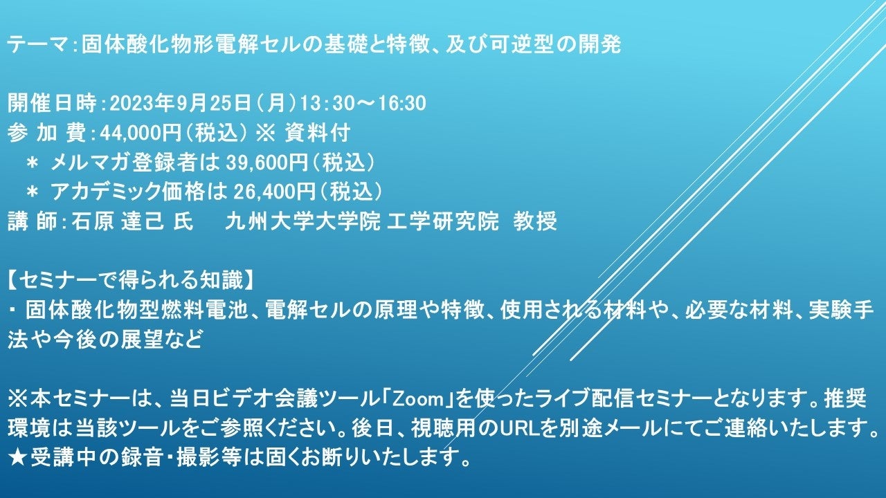【ライブ配信セミナー】固体酸化物形電解セルの基礎と特徴、及び可逆型の開発 9月25日(月)開催 主催:(株)シーエムシー・リサーチ
