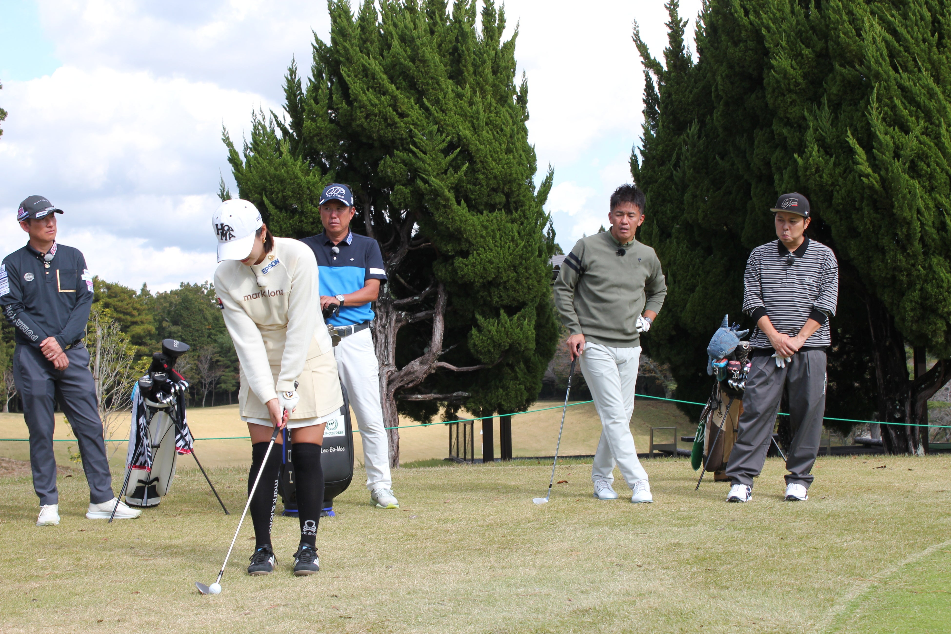 まずはティーショット。武井、東ブクロそれぞれのティーショットを見た後、それぞれの癖と修正点をアドバイスします。