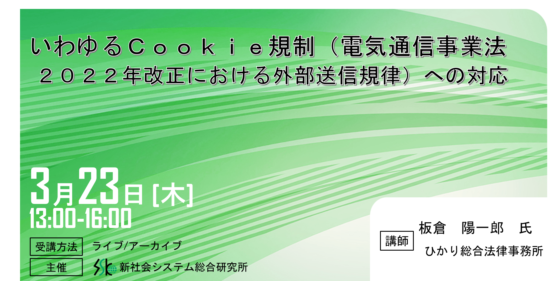 「いわゆるCookie規制への対応」と題して、ひかり総合法律事務所 弁護士 板倉 陽一郎氏によるセミナーを2023年3月23日(木)に開催!!