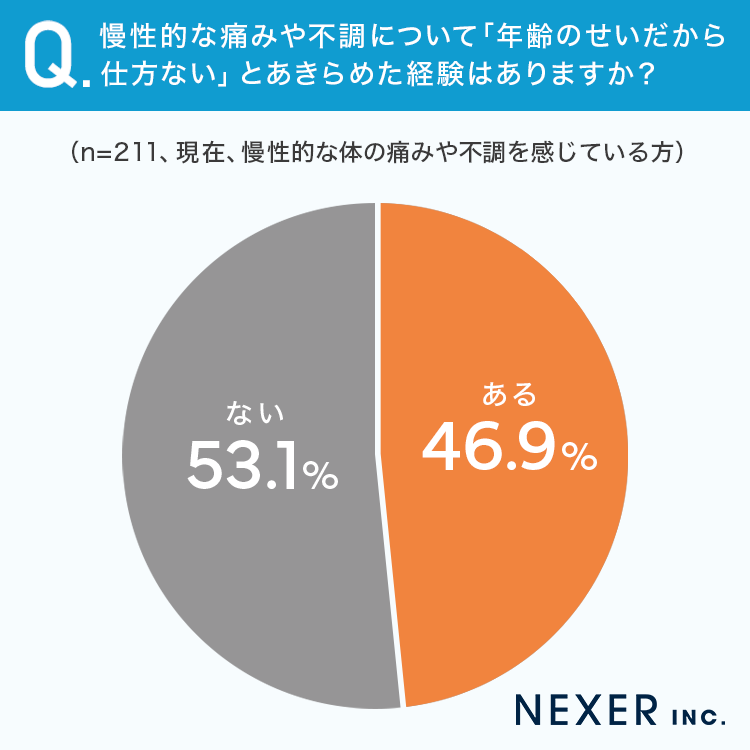 ■46.9%が、痛みや不調を「年齢のせいだから仕方ない」とあきらめた経験がある