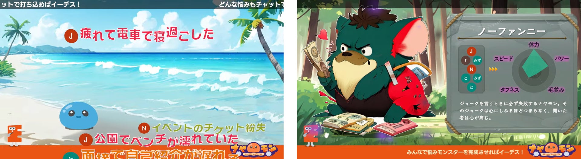 この度、YouTube参加型ゲームコンテンツ『ナヤモン』のプレイ動画を初公開します!チャット欄に打ち込まれる「悩み」をAIが吸収・判別し、次々と進化していくモンスターの姿をぜひご覧ください!