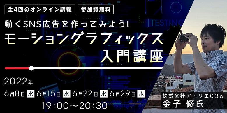株式会社クリーク・アンド・リバー社(C&R社)は6月8日(水)から4回にわたり、テレビ業界で活躍するディレクターやアシスタントディレクターの方などを対象に、Adobe After Effectsを使用した「モーショングラフィックス入門講座 ~動くSNS広告を作ってみよう!~」をオンラインで開催いたします。