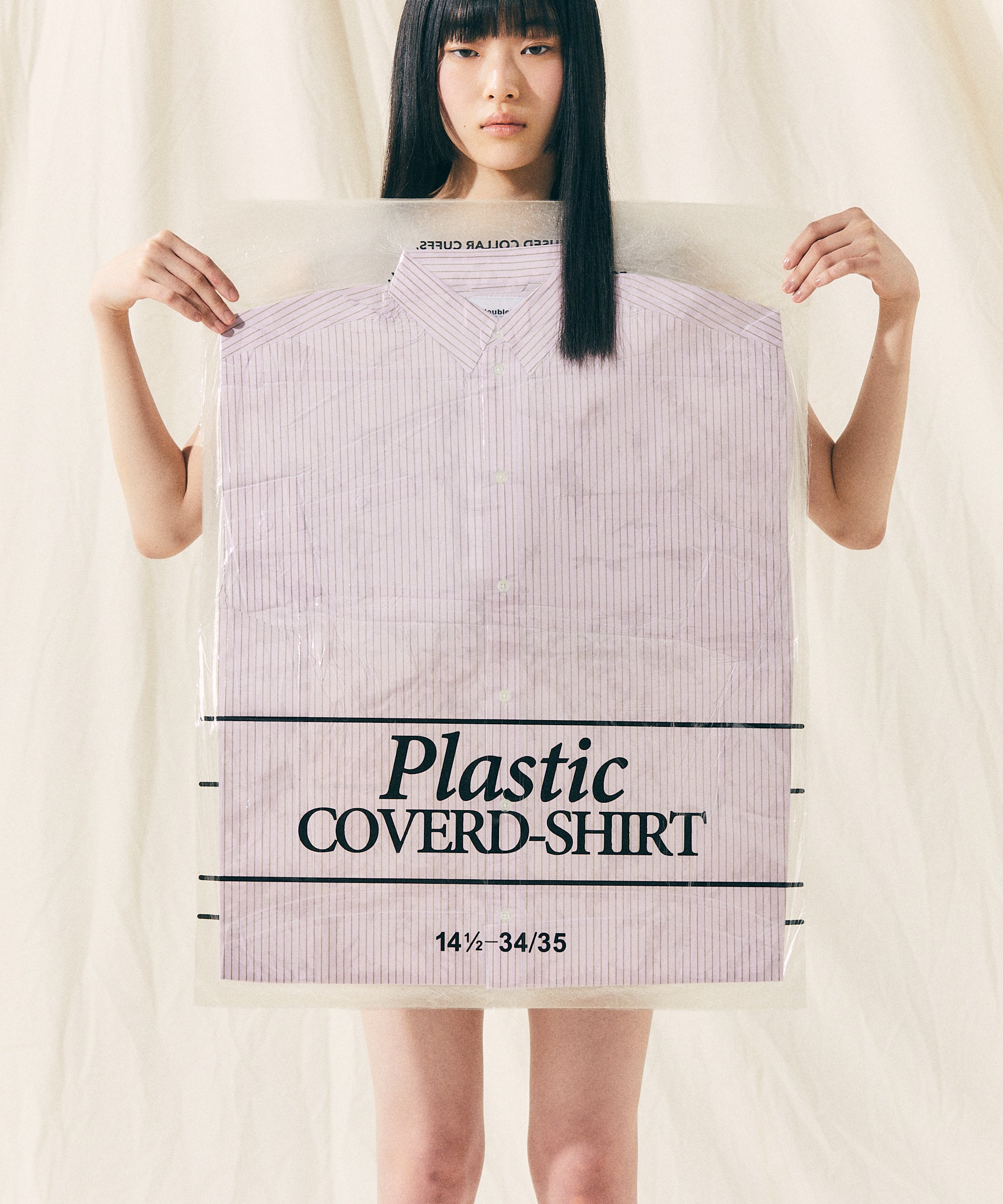 「デッドストックは死んでいない」の言葉を元に、"UNDEAD-STOCK / 生きる在庫"をテーマにした18年春夏の復刻。仕上がった製品をデッドストックのビニール袋に見立てたシートにサンドし、パッケージングしたデザインは、「商品をよく見せるためのパッケージをそのまま着る」というコンセプトでつくられています。今回カラーは当時販売されたブルーストライプに加えて、22年秋冬コレクションで使用されたピンクストライプの生地を新たに追加し、ご紹介いたします。
