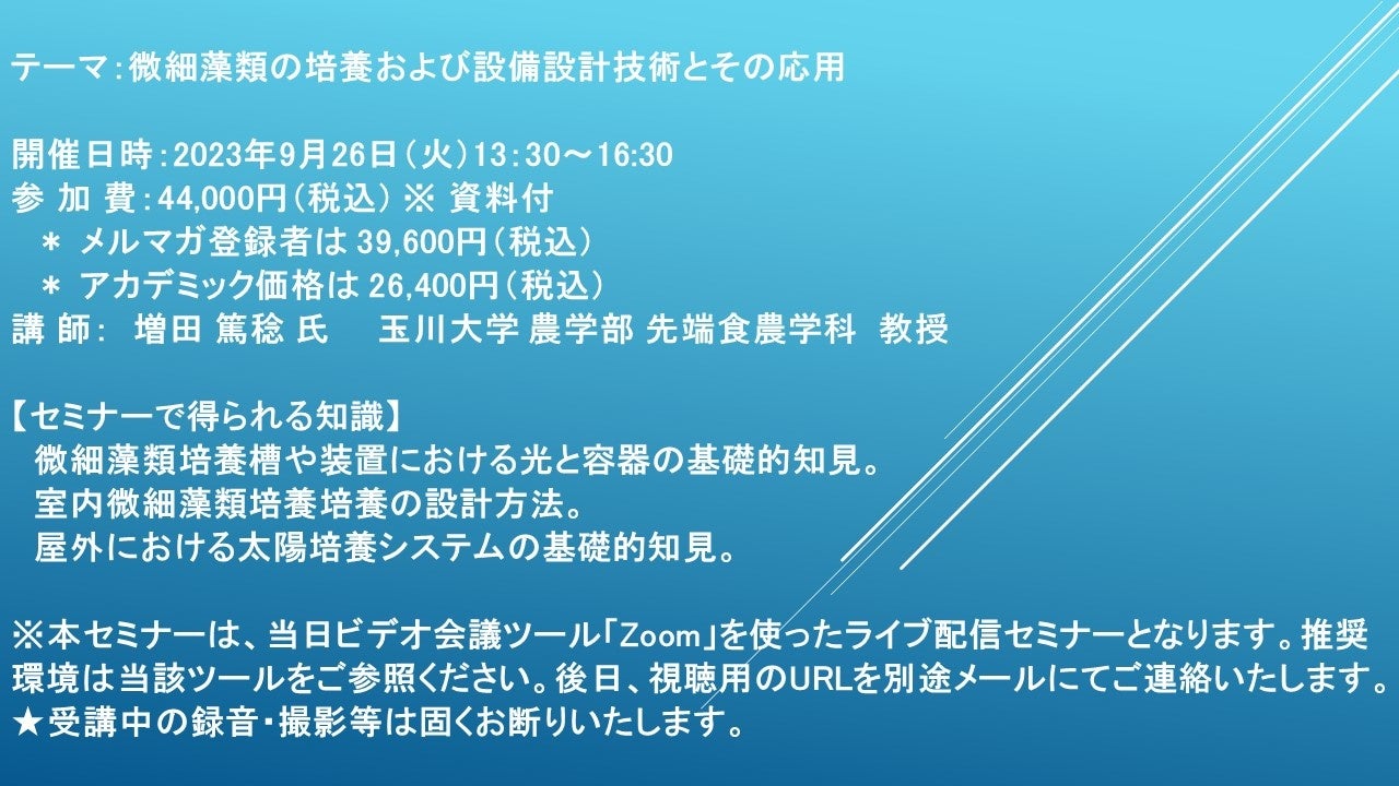 【ライブ配信セミナー】微細藻類の培養および設備設計技術とその応用 9月26日(火)開催 主催:(株)シーエムシー・リサーチ