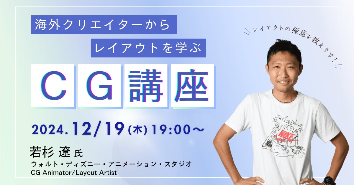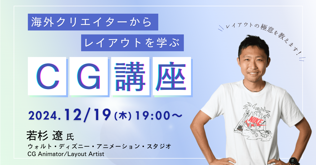本講座は、若杉氏がこれまで手がけてきた作品や経験をもとに、海外での働き方やアニメーション制作のプロセス、CGレイアウトの基礎について解説いただきます。アニメーション業界を志す学生や、クリエイターとしてのキャリアアップを目指す方にとって、第一線で活躍するプロフェッショナルから直接学べる貴重な機会です。