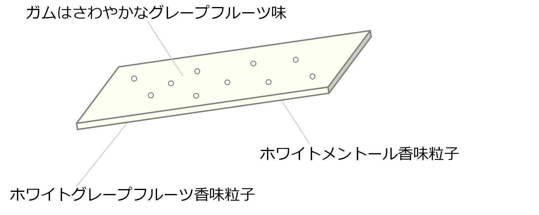 板ガムならではのふくよかな噛み心地と、Wホワイト香味粒子(※)のシャリシャリとした食感が特徴です。