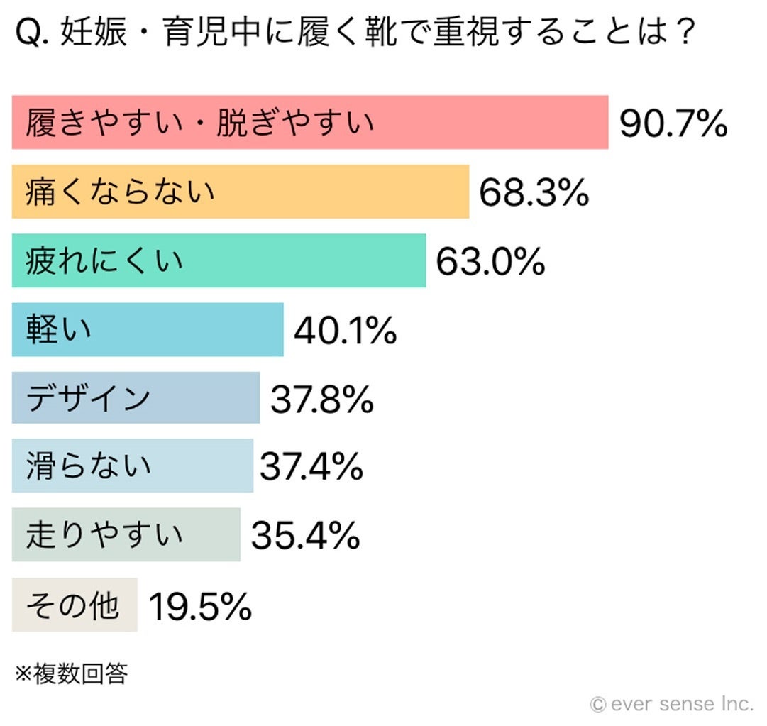 妊娠・育児中の靴で重視することは「脱ぎ履きのしやすさ・歩きやすさ」