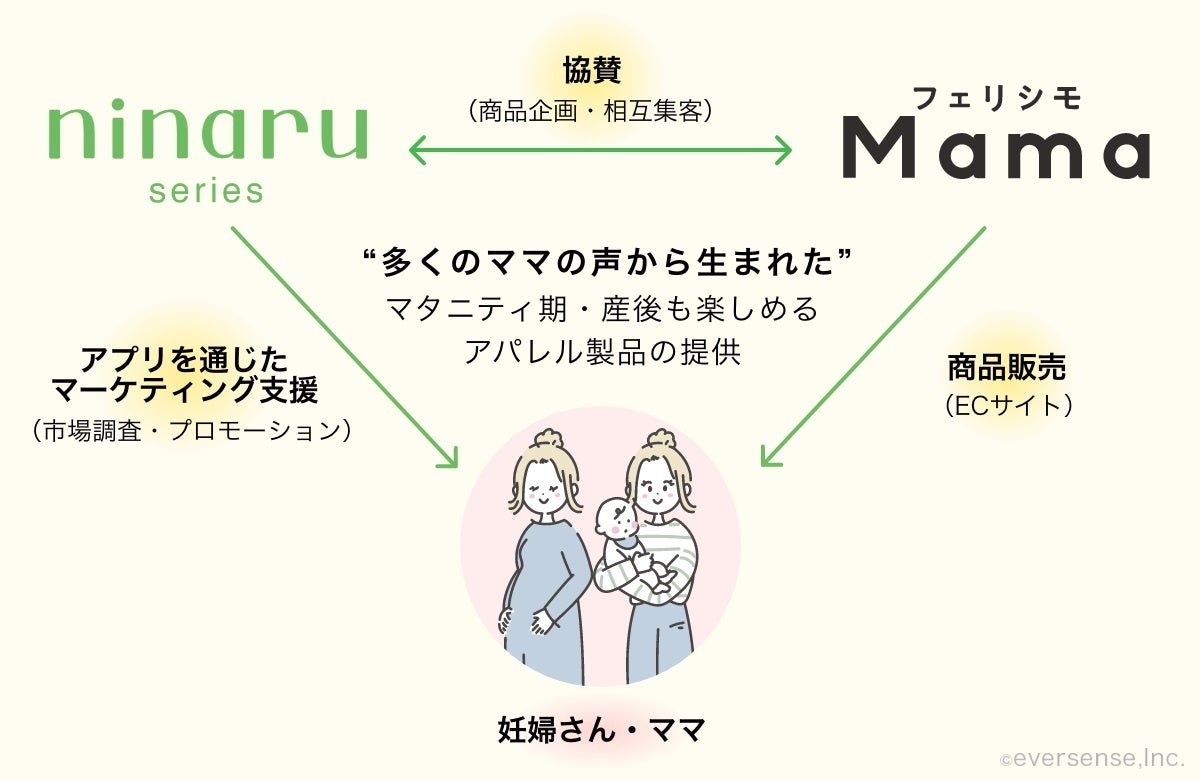マタニティ・産後ママ向けの商品を届ける「フェリシモ Mama」と、マタニティ・ママ向けに情報提供をしているアプリ「ninaru」 シリーズがともに大事にしているキーワードは「ママに寄りそうこと」です。ママに寄りそう商品を作りたいとの思いから、第2作目のコラボ商品を開発し販売を開始しています。
