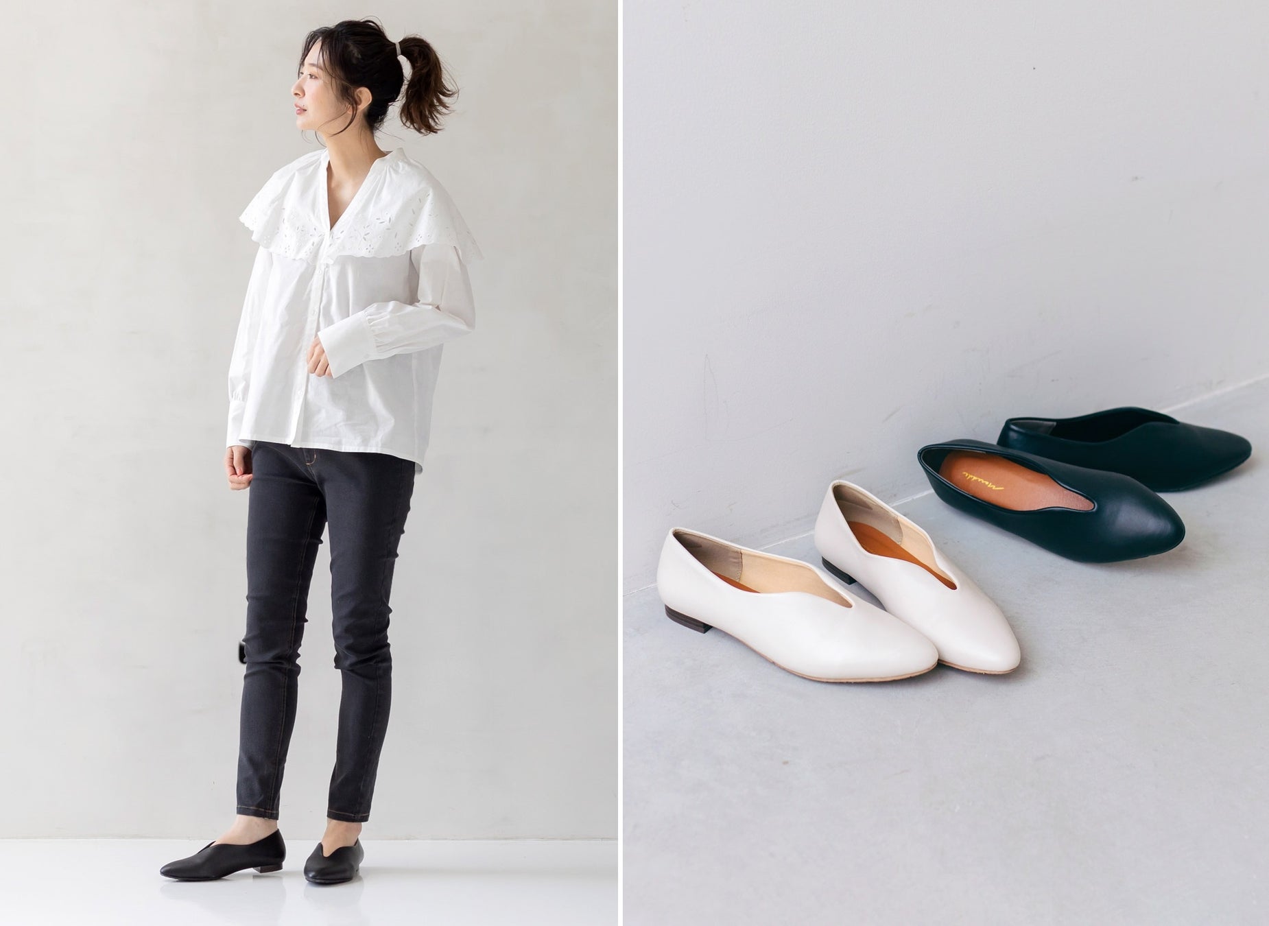 アンケートから「歩きやすさとすっきり見え」するデザインを追及したフラットシューズが完成