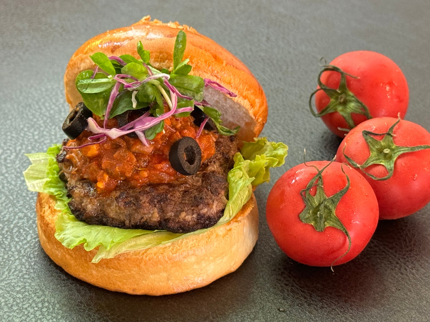 暑い夏にぴったりのスパイスの効いたハンバーガーです。