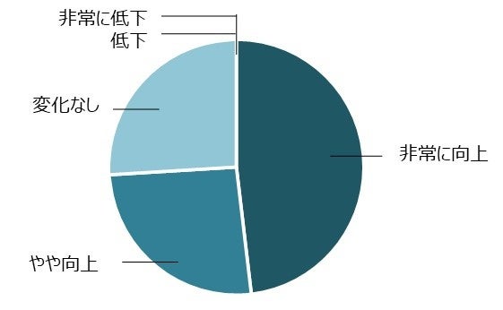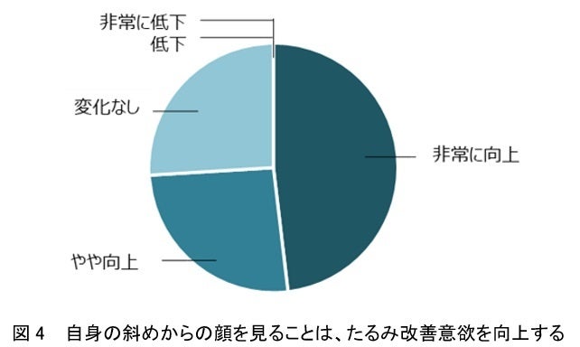 斜めからの写真を見ることで、たるみ改善意欲に変化があった人の割合。たるみ改善意欲の向上が認められる。