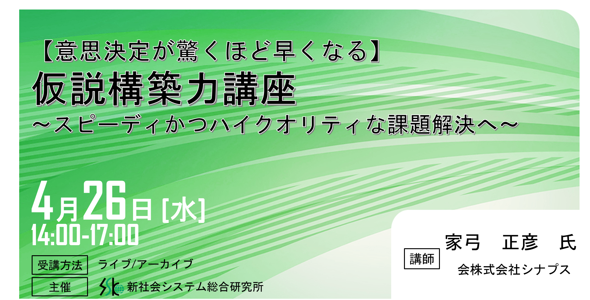 「仮説構築力講座」と題して、株式会社シナプス 代表取締役 家弓 正彦氏によるセミナーを2023年4月26日(水)に開催!!