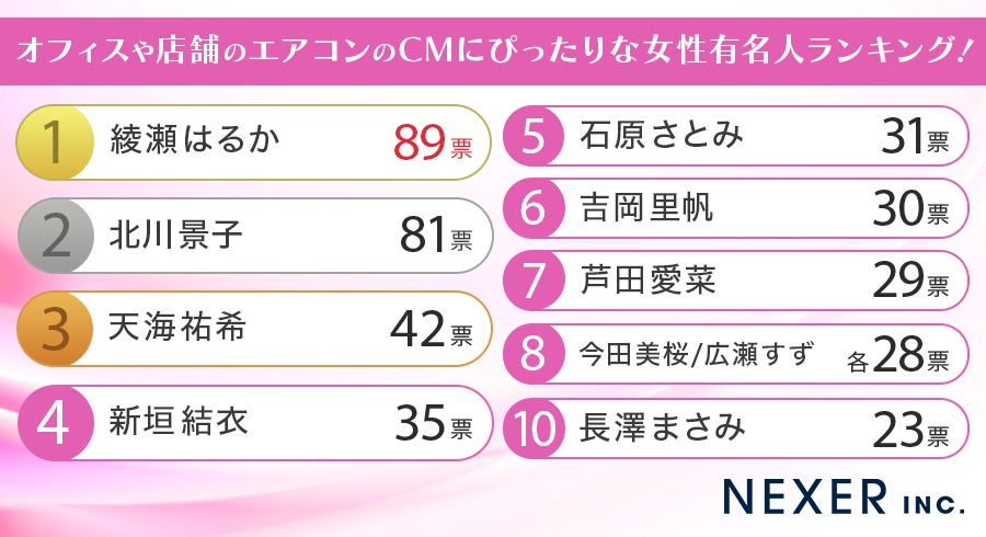株式会社NEXER・オフィスや店舗のエアコンのCMにぴったりな女性有名人に関する調査